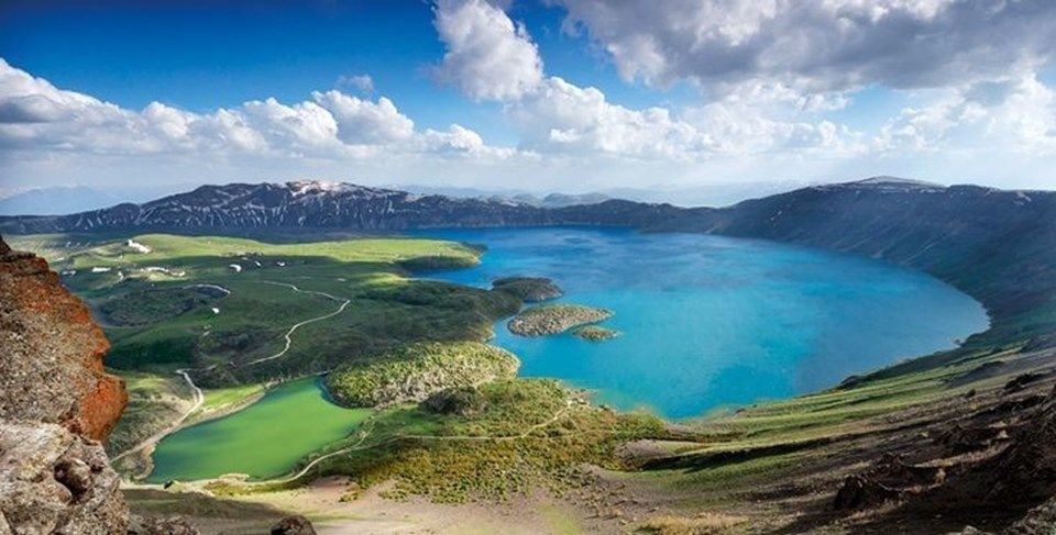Bitlis'in Tatvan ilçesinde dünyanın ikinci, Türkiye'nin en büyük krater gölü olan Nemrut Krater Gölü, ziyaretçi akınına uğruyor.