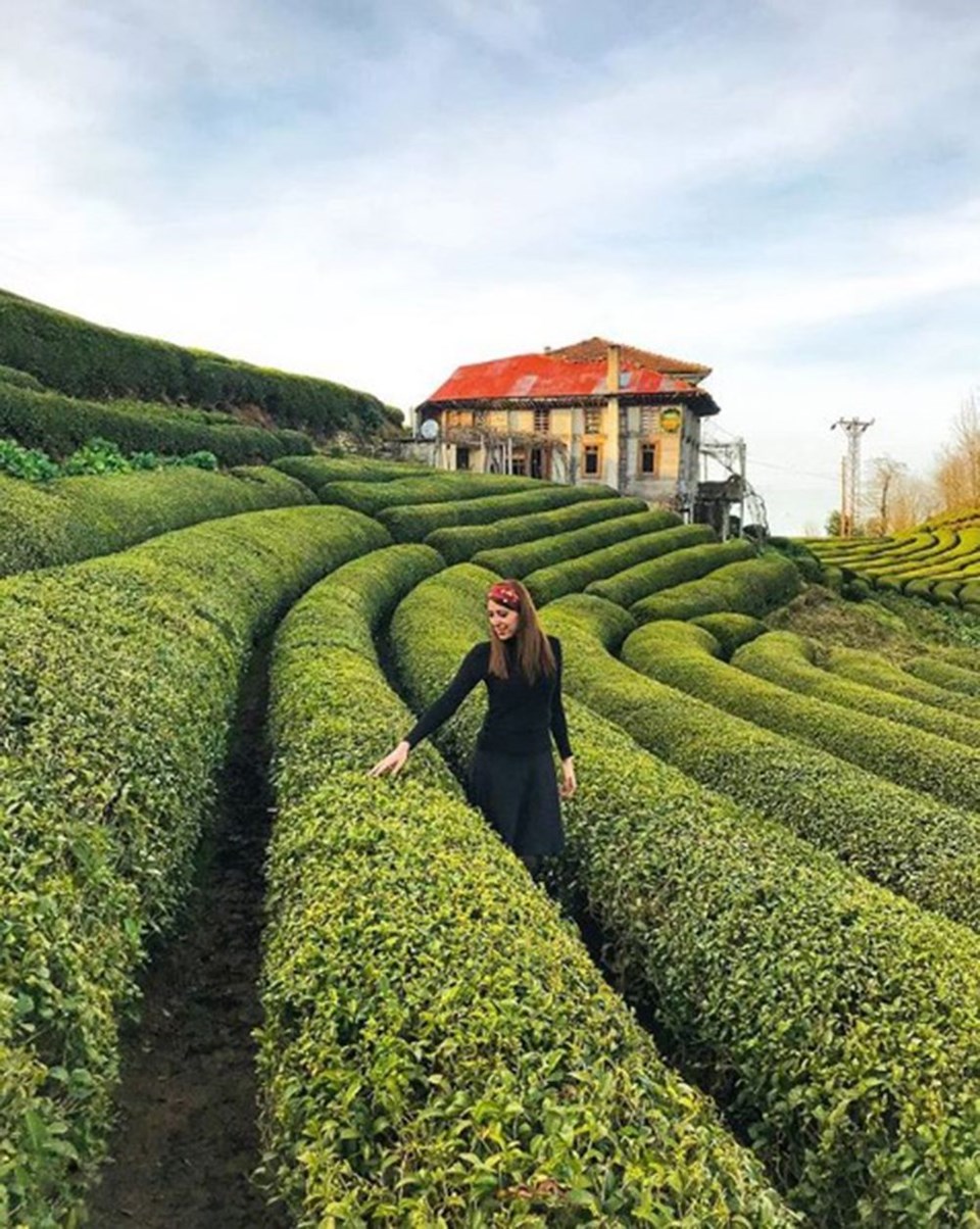 Rize'nin Çayeli ilçesi Haremtepe köyünde Kenan Çiftçi özenle ekerek düzenlediği çay bahçesi, bitişiğindeki ahşap evle birlikte görsel şölen sunuyor. Sosyal medyada ünü her geçen yayılan çay tarlası, ziyaretçilerin akınına uğruyor.